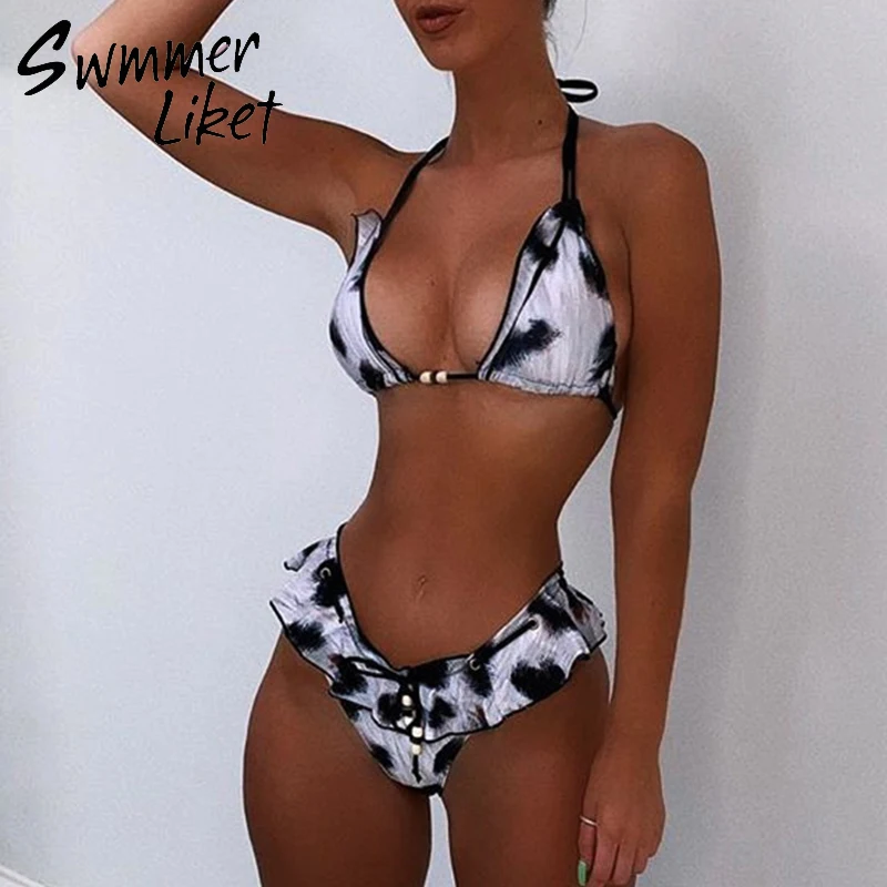 Flash Sale Sexy Bandage swimsuit female Leopard print bikini Halter swimwear women Ruffle bikini 2019 Sexy Dee
